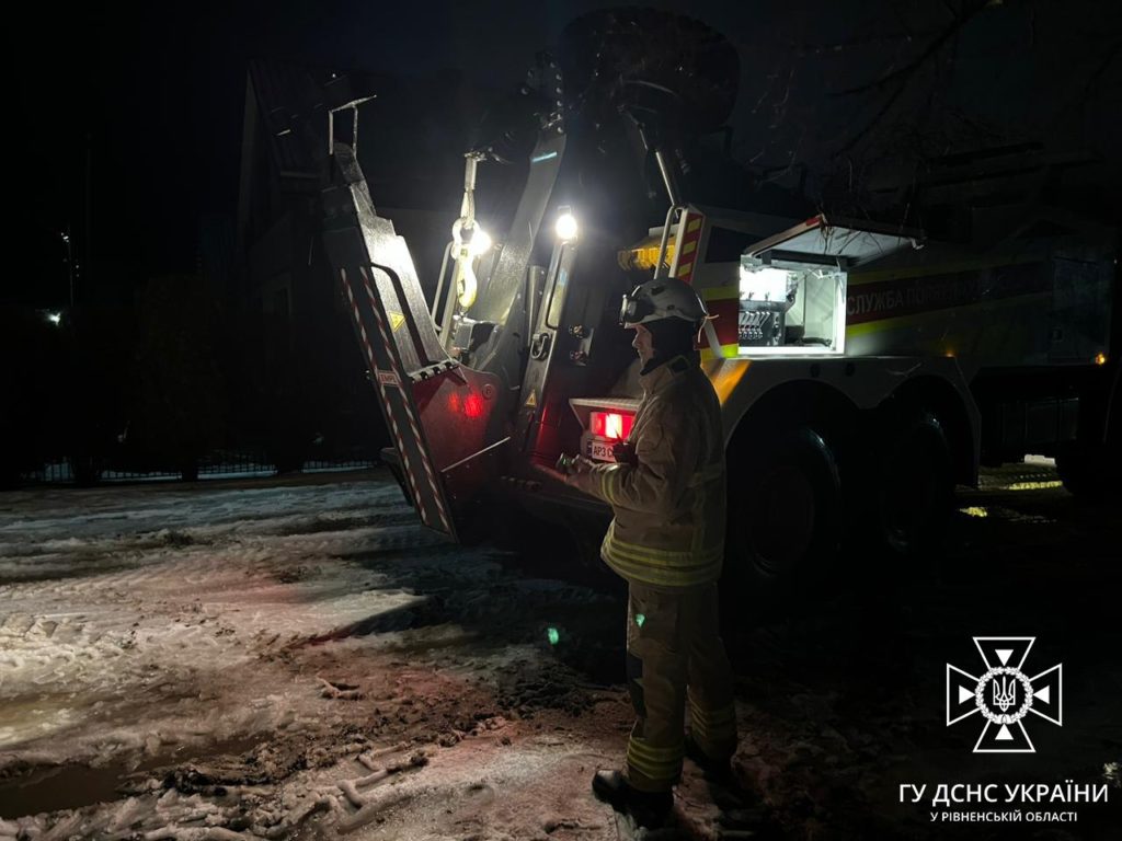 24 січня о 18:00 на спецлінію «101» надійшло повідомлення, що на автодорозі в селищі Клевань, Рівненського району вантажний автомобіль з’їхав з дороги та застряг в снігу.