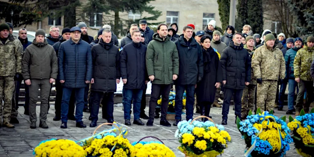 З нагоди державного свята представники влади – начальник Рівненської військової адміністрації Олександр Коваль, голова Рівненської обласної ради Андрій Карауш, секретар Рівненської міської ради Віктор Шакирзян та заступник міського голови Рівного Євгеній Іванішин, військові, силовики та громадськість Рівненщини поклали квіти до пам’ятного знаку «Загиблим за Україну», що на майдані Магдебурзького права Рівного.