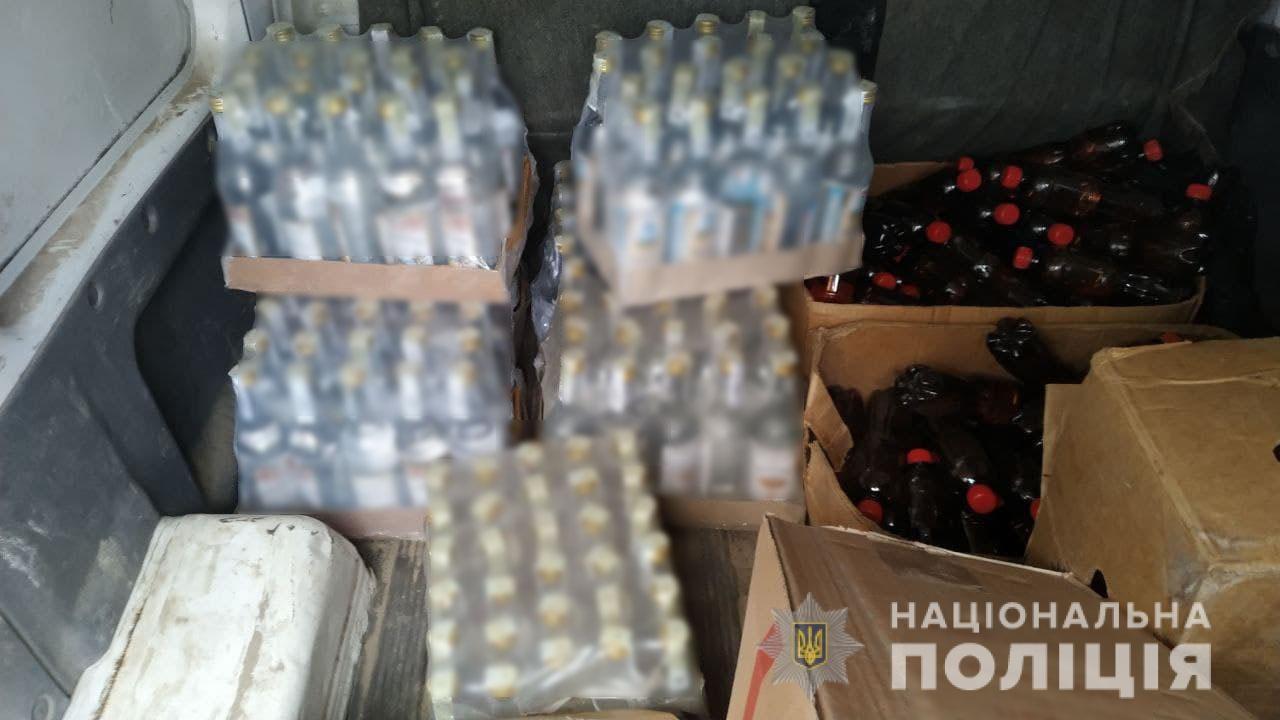 У багажному відділенні поліцейські виявили понад 60 літрів спирту невідомого походження у різних ємностях, 80 пляшок горілки по 0,5 л, 30 пляшок по 0,25 л із марками акцизного податку, що мають явні ознаки підробки, 20 блоків безакцизних цигарок.