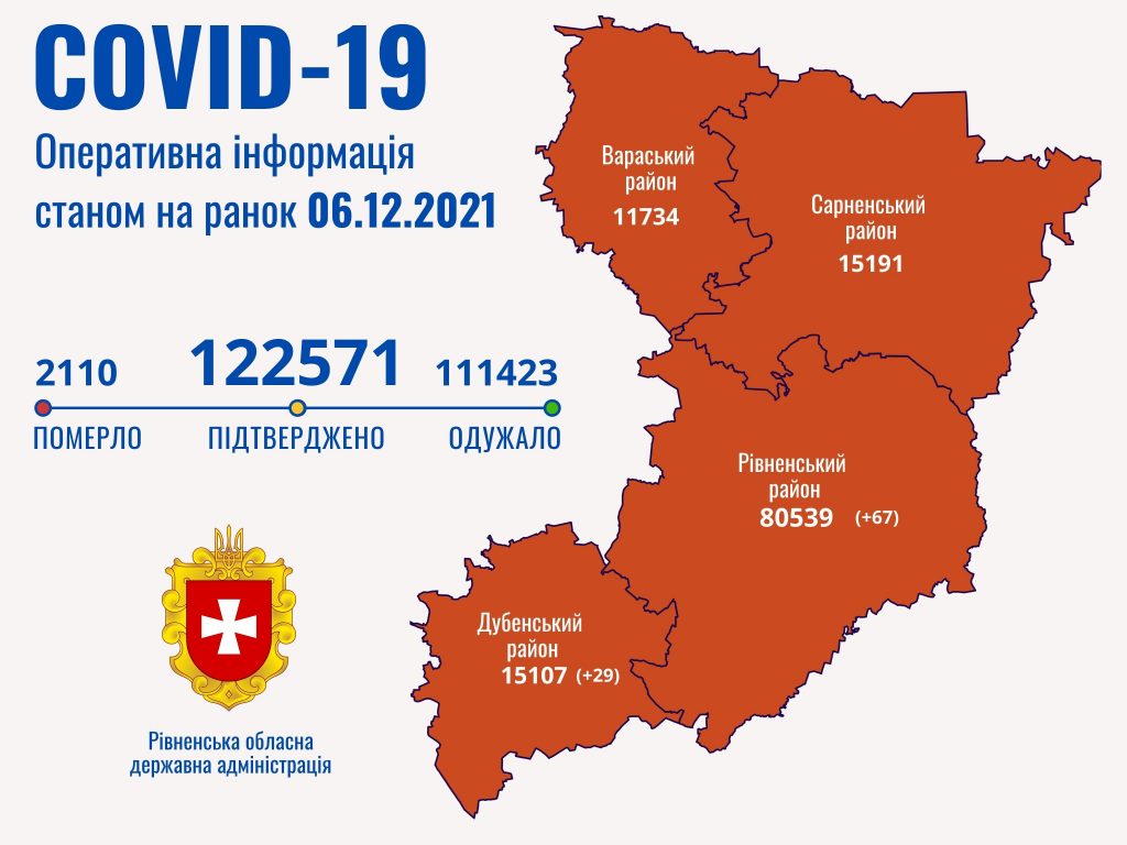 В області зареєстровано 2110 летальних випадків, спричинених COVID-19. Померли 78-річний житель смт Рокитне, 69-річна жителька с. Масевичі, 85-річна жителька с. Яринівка Сарненського району, 77-річна жителька м. Радивилів, 73-річна жителька м. Корець, 67-річна та 60-річний жителі м. Здолбунів, 71-річна жителька с. Застав’я, 54-річний житель с. Болотківці Рівненського району, 74, 82, 87, 89-річні жителі м. Рівне.