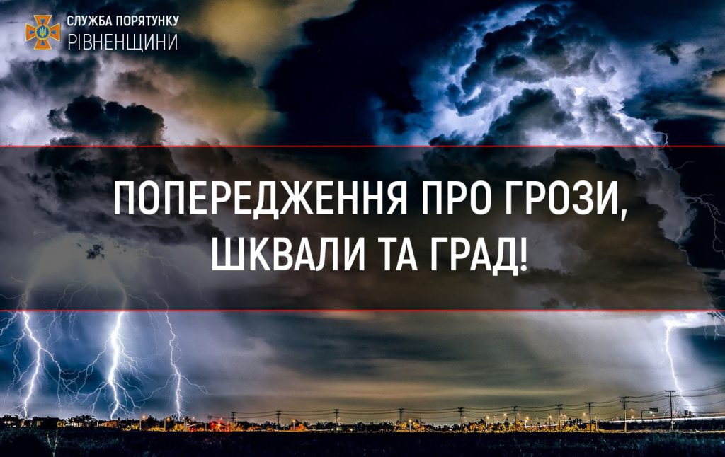 очікуються грози, значний короткочасний дощ, місцями град та шквали 15-20 м/с
