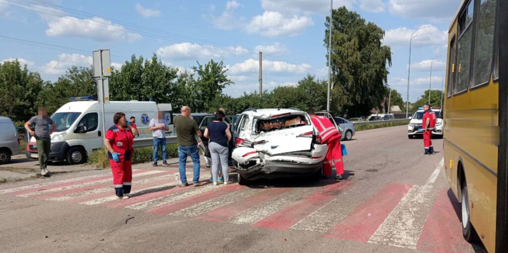 Унаслідок ДТП до лікарні доставили двох пасажирів: чоловіка та малолітню дитину. Попередньо вони отримали незначні травми.