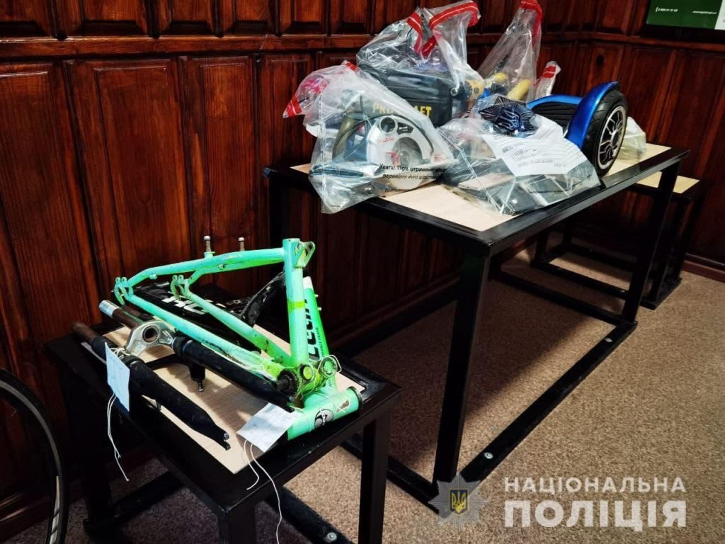 У квартирі співробітники Рівненського РУП виявили та вилучили зіп-пакети із метамфетаміном, канабісом, прекурсорами, обладнання для виготовлення наркотичних речовин і психотропів, пістолет без маркування, 21 мобільний телефон, рами та комплектуючі до велосипедів, електроінструменти тощо.