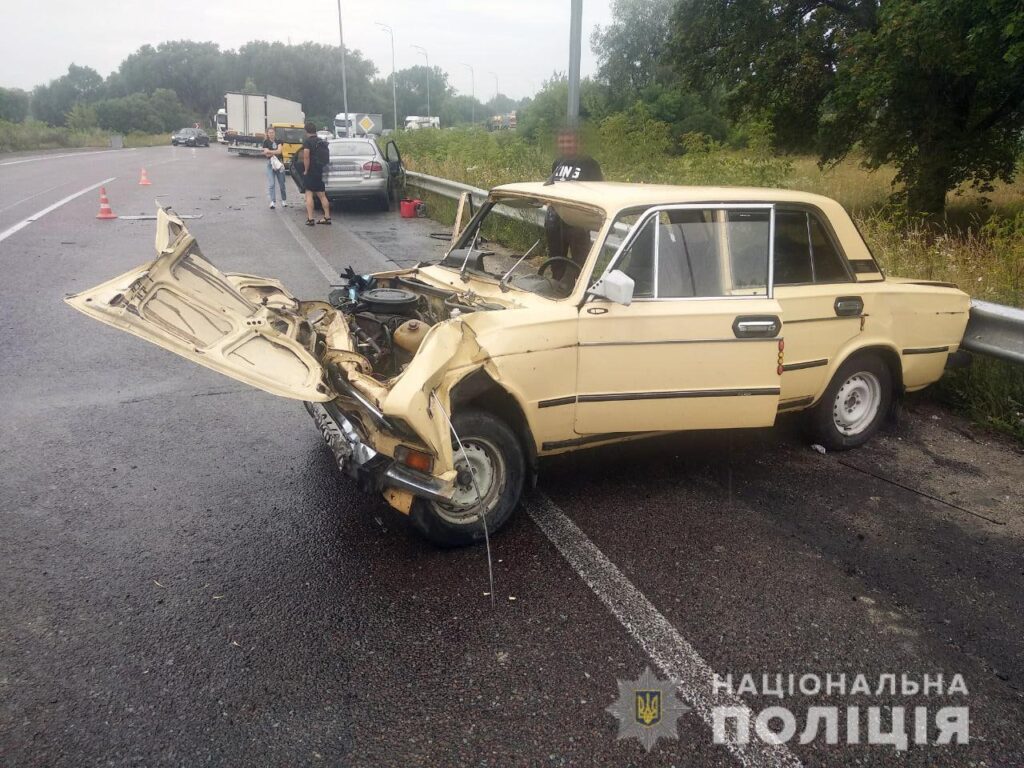 ДТП на трасі «Київ-Чоп» неподалік села Ситне сталося учора, 31 липня. На місці події патрульна поліція встановила, що водій автомобіля «ВАЗ», 60-річний житель міста Нетішин, не впорався із керуванням і зіткнувся із зустрічним автомобілем «Daewoo Lanos», яким кермував 32-річний житель Харкова.