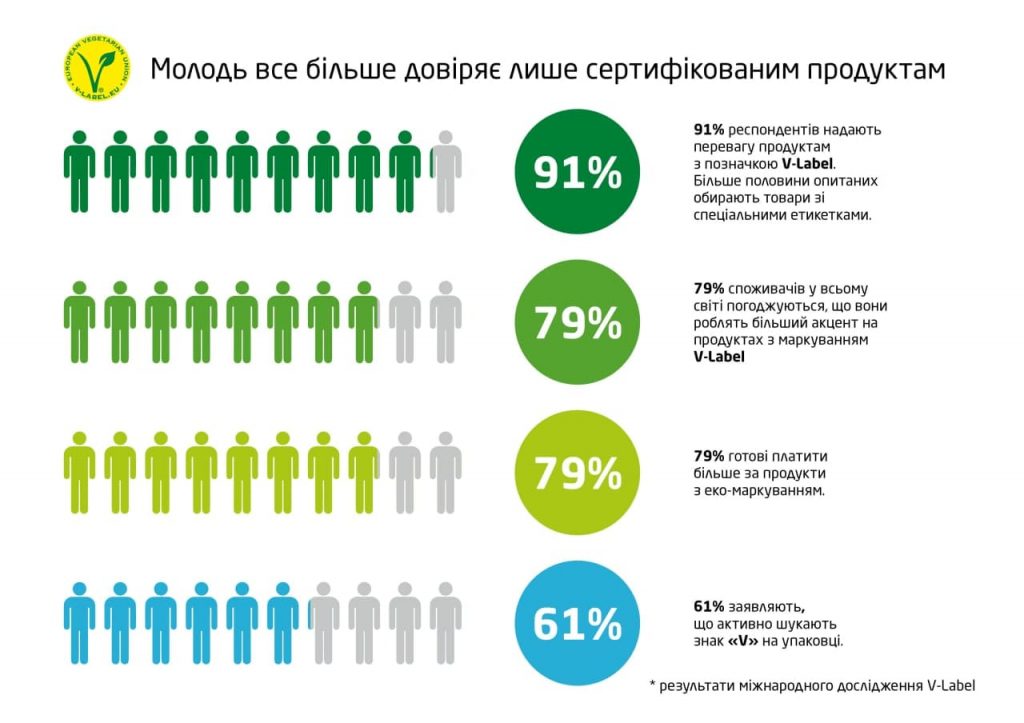 79% споживачів у всьому світі погоджуються, що вони роблять більший акцент на продуктах з маркуванням V-Label, а 61% заявляють, що активно шукають знак «V» на упаковці.