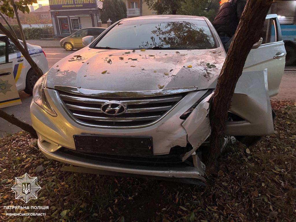 Сьогодні, 24 жовтня близько 6-ї ранку, заявник повідомив, що на вулиці Дубенській у Рівному авто врізалося у дерево. Патрульні одразу вирушили на місце події, де дійсно виявили авто Hyundai Sonata та чоловіка, який спав біля цієї автівки.