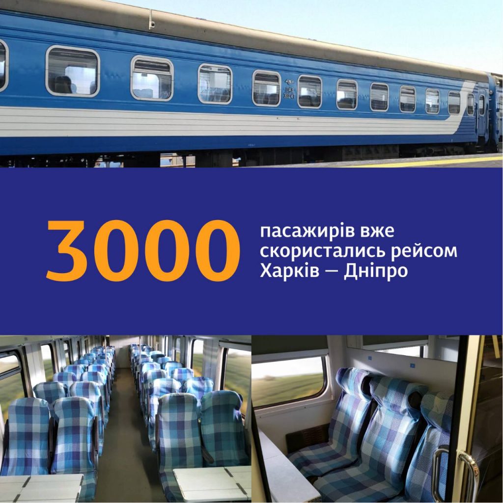 Експрес між містами-мільйонниками Харків — Дніпро курсує менше тижня, а вже став хітом серед пасажирів. Мандрівку залізницею між містами-мільйонниками обрали вже понад 3 тис. подорожуючих, а у пікові дати заповненість сягала 80%.