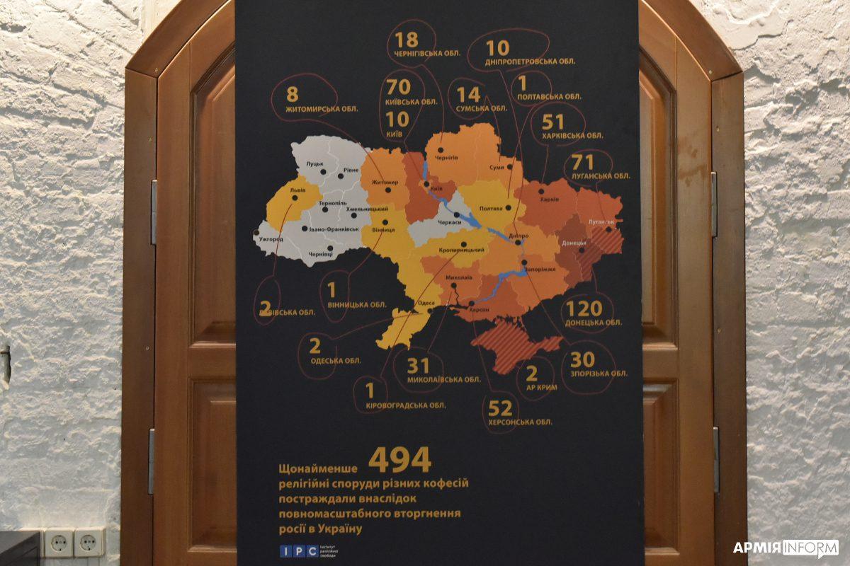 За час широкомасштабної агресії російської федерації російські окупанти зруйнували, сплюндрували або пошкодили близько пів тисячі храмів і сакральних споруд на території України, значна частина з яких має історико-культурну цінність та є пам’яткою архітектури й мистецтва. Цілеспрямовано та систематично загарбники руйнують Українські храми, які є матеріальним втіленням духовності нашого народу.