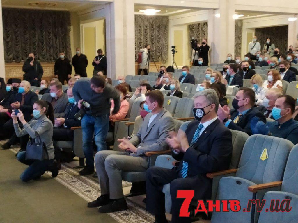 Експрезидент Петро Порошенко під час передвиборчої кампанії двічі приїжджав у Рівне, щоб підтримати команду «Європейської солідарності» і її кандидата на посаду міського голови Рівного Олександра Третяка. Тоді ж пообіцяв, що першим містом, до якого він приїде після виборів, буде Рівне. Петро Порошенко таки дотримав слова і приїхав сьогодні на першу сесії новообраної Рівнеради.