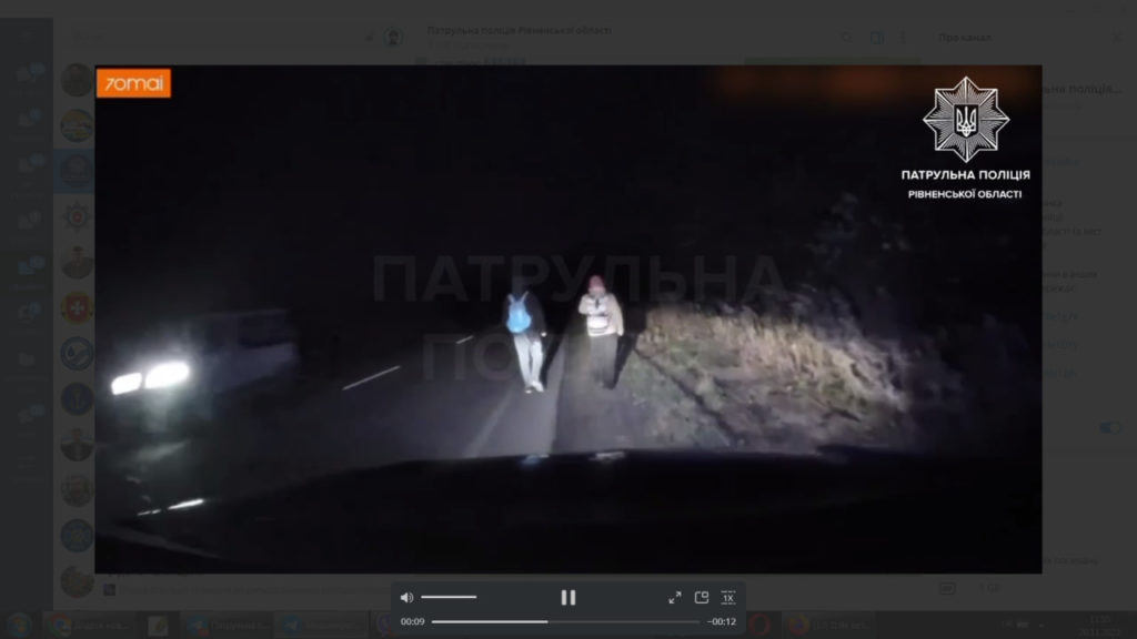 Напередодні увечері, 19 листопада, під час патрулювання на трасі поблизу Рівного екіпаж помітив 2-х неповнолітніх. Вони рухалися краєм проїзної частини без світлоповертальних елементів.