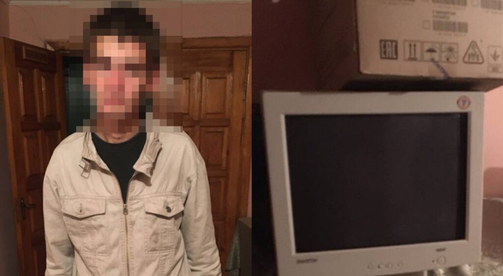 Інспектори негайно прибули на місце події, обстежили територію училища й виявили чоловіка, який ніс комп’ютерний монітор. Пояснити звідки у нього ця річ — громадянин не міг.