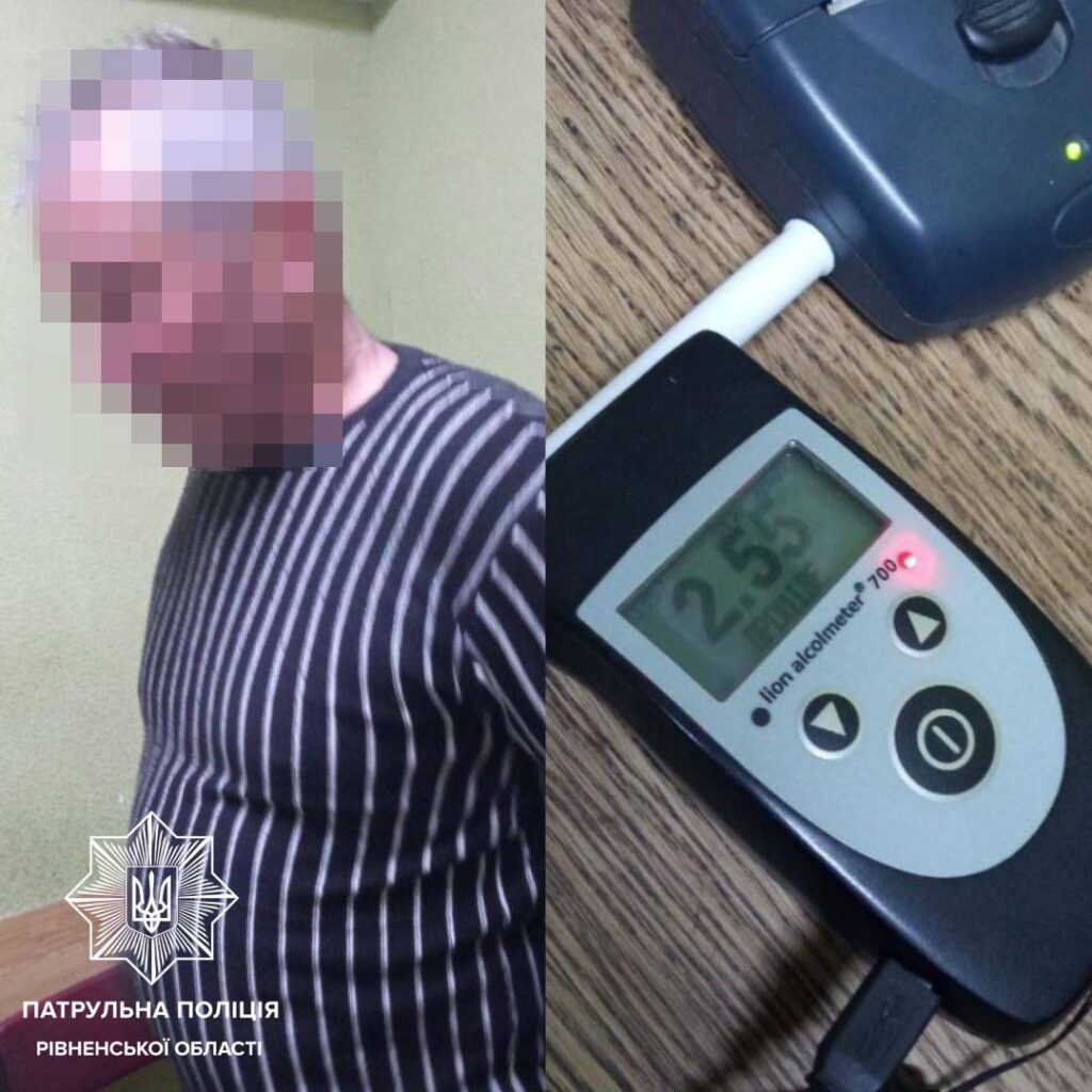 Учора ввечері на автомобільній дорозі Н-25 (Городище – Рівне – Старокостянтинів) інспектори зупинили транспортний засіб Volkswagen. Під час спілкування з 60-річним керманичем охоронці порядку помітили явні ознаки алкогольного сп’яніння. Результат огляду — 2.55 проміле.