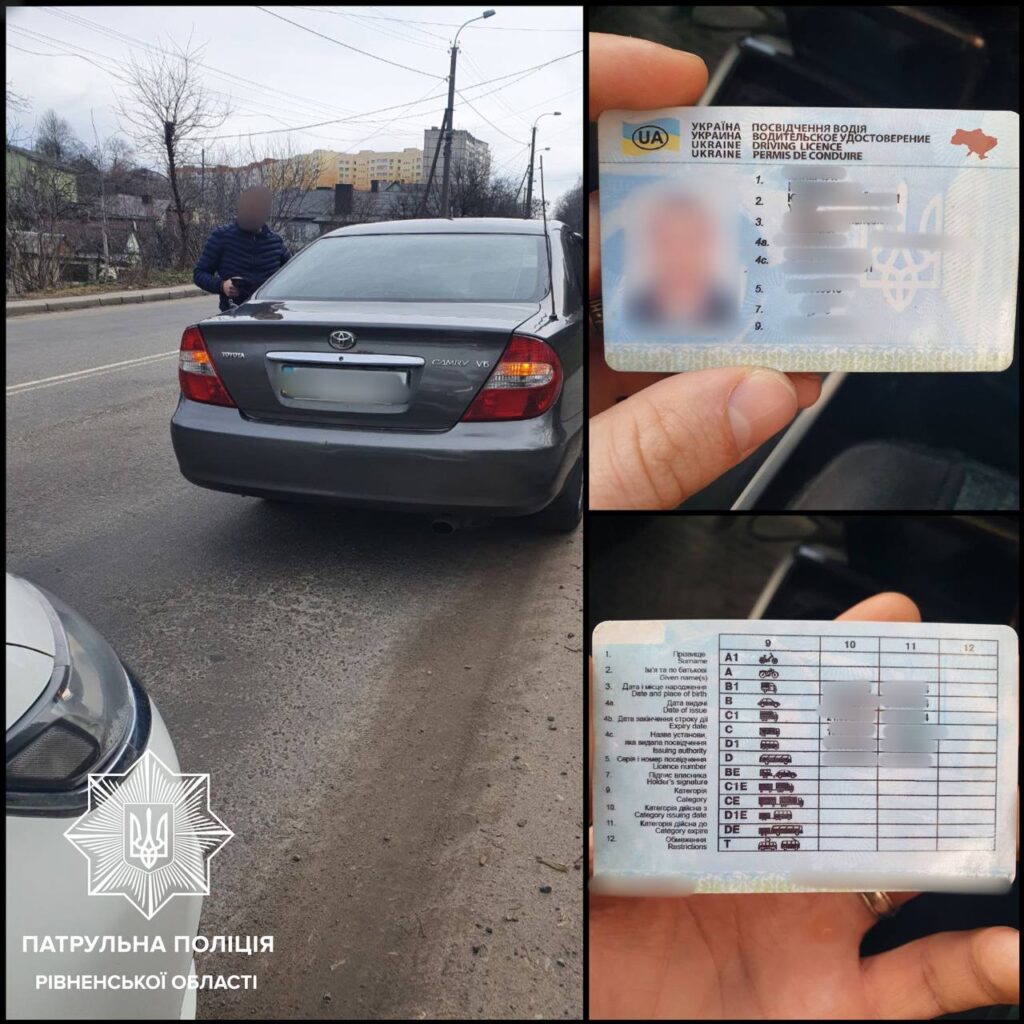 Патрульні у Рівному на вулиці Князя Володимира зупинили автомобіль Toyota Camry вчора, 15 березня, близько 16-ї години.
