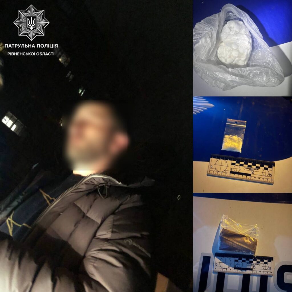 Під час неї у чоловіка виявили поліетиленовий пакет із кристалічною речовиною білого кольору, яка зовні схожа на наркотичну, пакет із білими, круглими таблетками у кількості 289 штук, ймовірно, це прекурсори для виготовлення наркотичних речовин і пакетик із коричневою речовиною, зі слів чоловіка — це фосфор.
