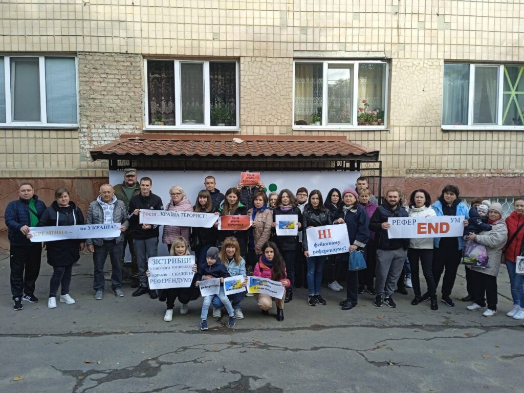 Вимушено переміщені громадяни України із Луганщини публічно засудили злочинні дії рф та висловили своє негативне ставлення до «референдуму».