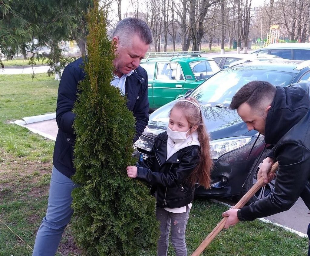 П’ять молодих деревець на місці майбутньої туєвої алеї минулої п’ятниці власноруч посадили генеральний директор «нетканки» Василь Мосійчук та член Наглядової ради підприємства Богдан Гапяк зі своєю внучкою Міланкою.