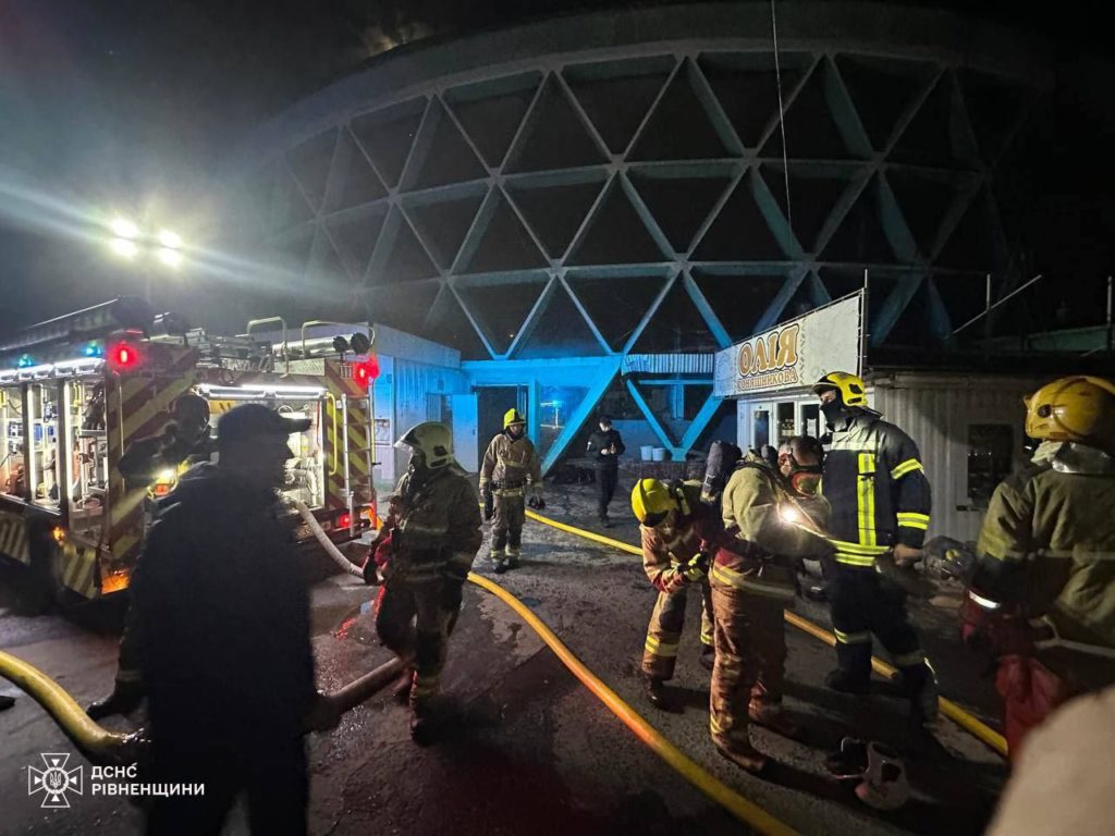 По прибуттю рятувальників до місця виклику було виявлено загоряння п’яти продуктових павільйонів в будівлі критого рикну та чотирьох продуктових павільйонів поруч з будівлею.