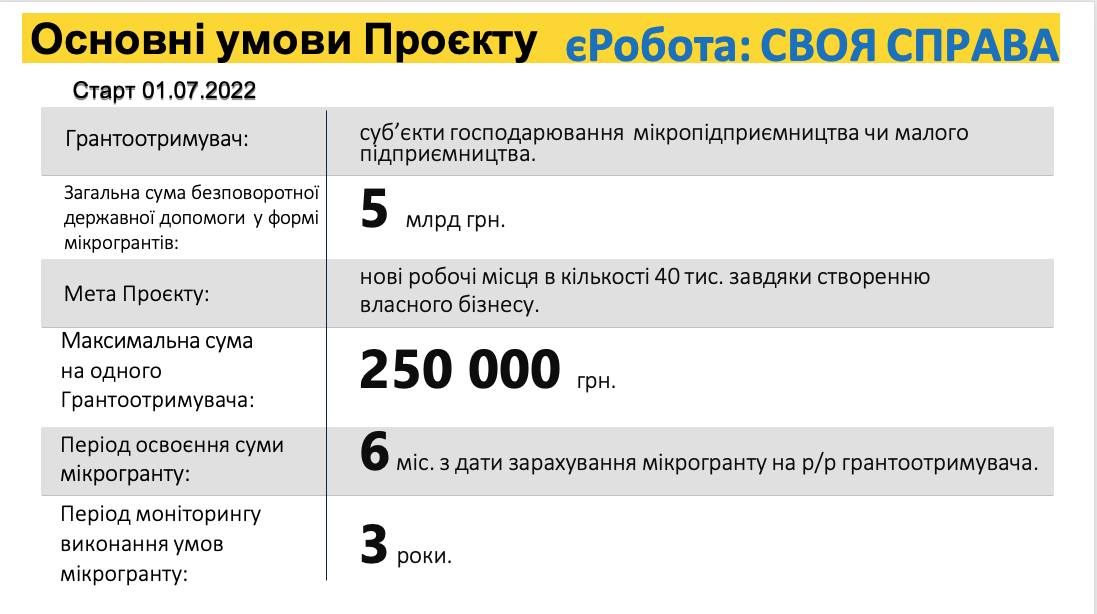 Умови участі у перших чотирьох програмах вже розміщені на єдиному порталі державних послуг «Дія». https://diia.gov.ua/…/categories/gromadyanam/yerobota…