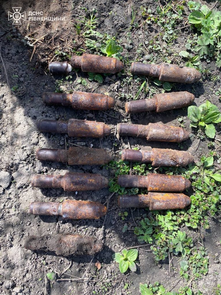 В Рівненському районі піротехніки ДСНС знищили 13 гвинтівкових гранат Grosse Gewehrpanzergranate, які були виявлені місцевими мешканцями під час земляних робіт в селі Завизів.