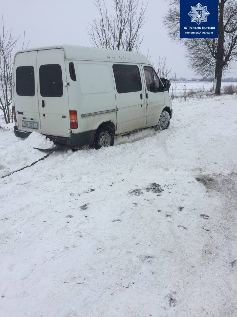 Повз проїжджали небайдужі громадяни. Люди долучилися до інспекторів та допомогли відбуксирувати автівку, про це повідомляють в ТГ-каналі патрульної поліції Рівненської області.