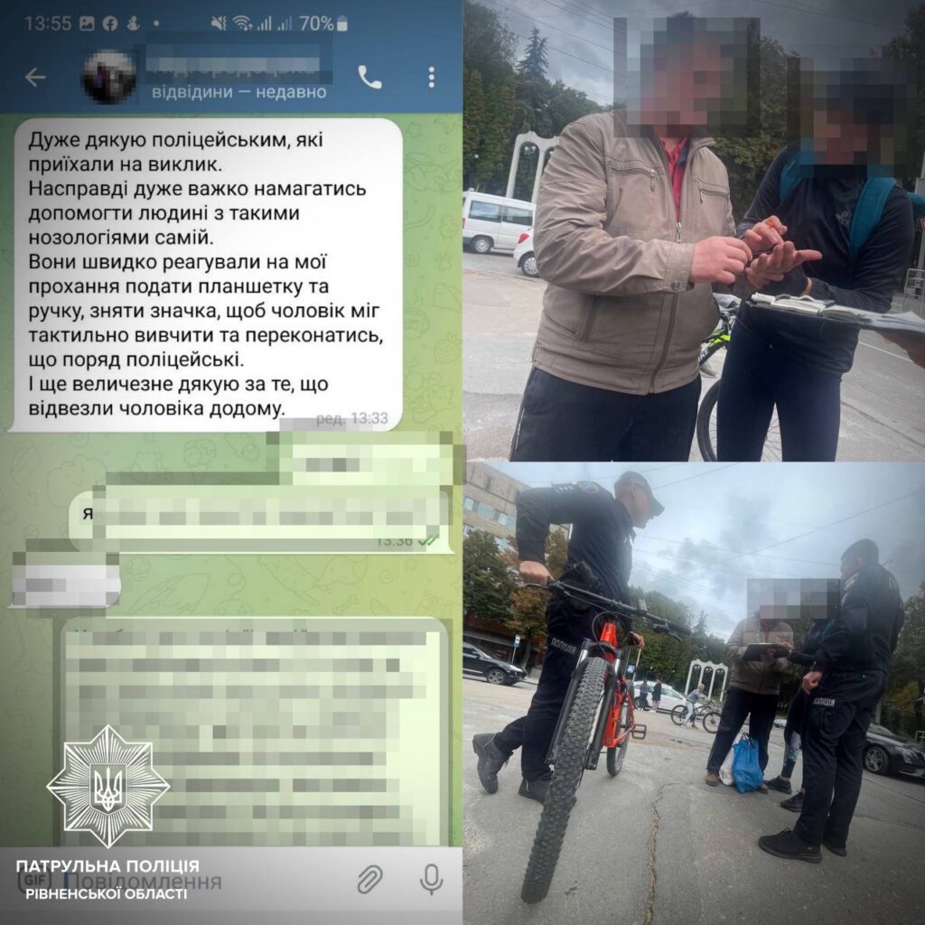 У суботу, 10 вересня, до поліції Рівного зателефонувала стурбована жінка.За її словами, на центральному ринку вона виявила безпорадного чоловіка з вадами слуху та зору. Він був повністю дезорієнтований і потребував допомоги, але йому було важко встановити контакт. Він не зміг пояснити, як чоловік опинився далеко від дому та як заблукав. Рівнянка здогадалася, що людина розуміє запитання, якщо вони написані на руці. Так вона дізналася, що він із Квасиліва, але точної адреси не назвав.