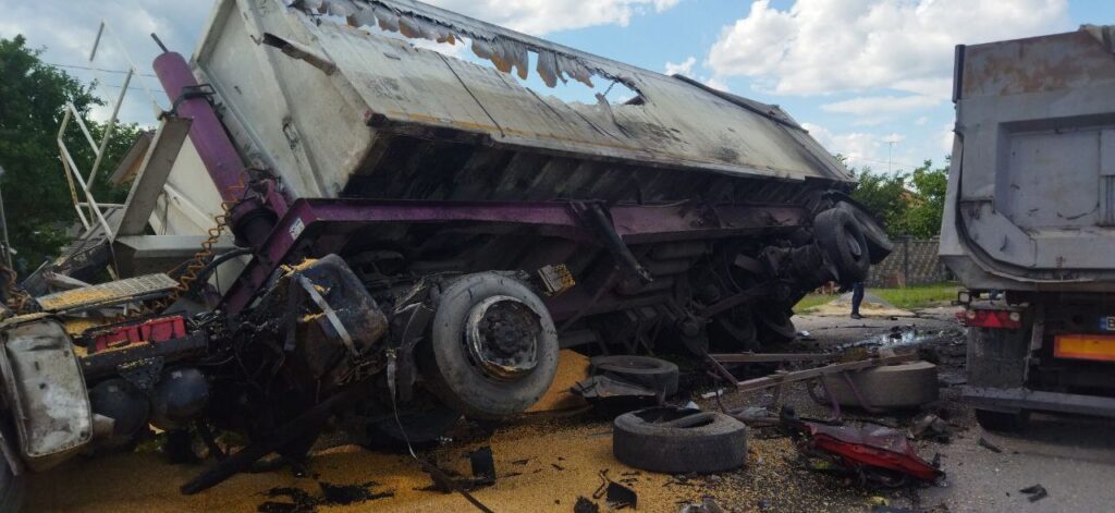 Крім того, від удару напівпричеп однієї з вантажівок відкинуло на узбіччя на припаркований автомобіль «Renault Kangoo», який отримав механічні пошкодження. У салоні легковика на момент автопригоди нікого не було.