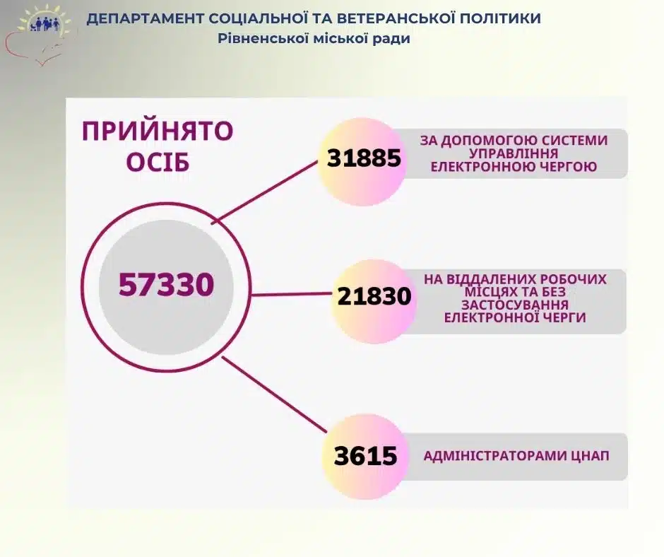 Соціальні послуги упродовж січня-вересня 2025 від Департаменту соціальної та ветеранської політики Рівненської міської ради отримали понад 57 тисяч мешканців громади: це 58 тисяч консультацій через кол-центр та понад 57 тисяч прийомів громадян.