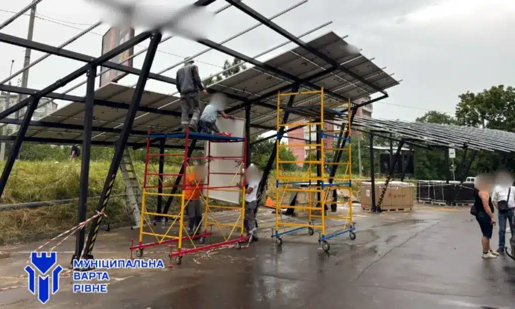 У Рівному на земельній ділянці, що належить громаді, але перебуває в оренді супермаркету, без жодних дозволів та погоджень з міською владою встановили металеві конструкції з сонячними панелями.