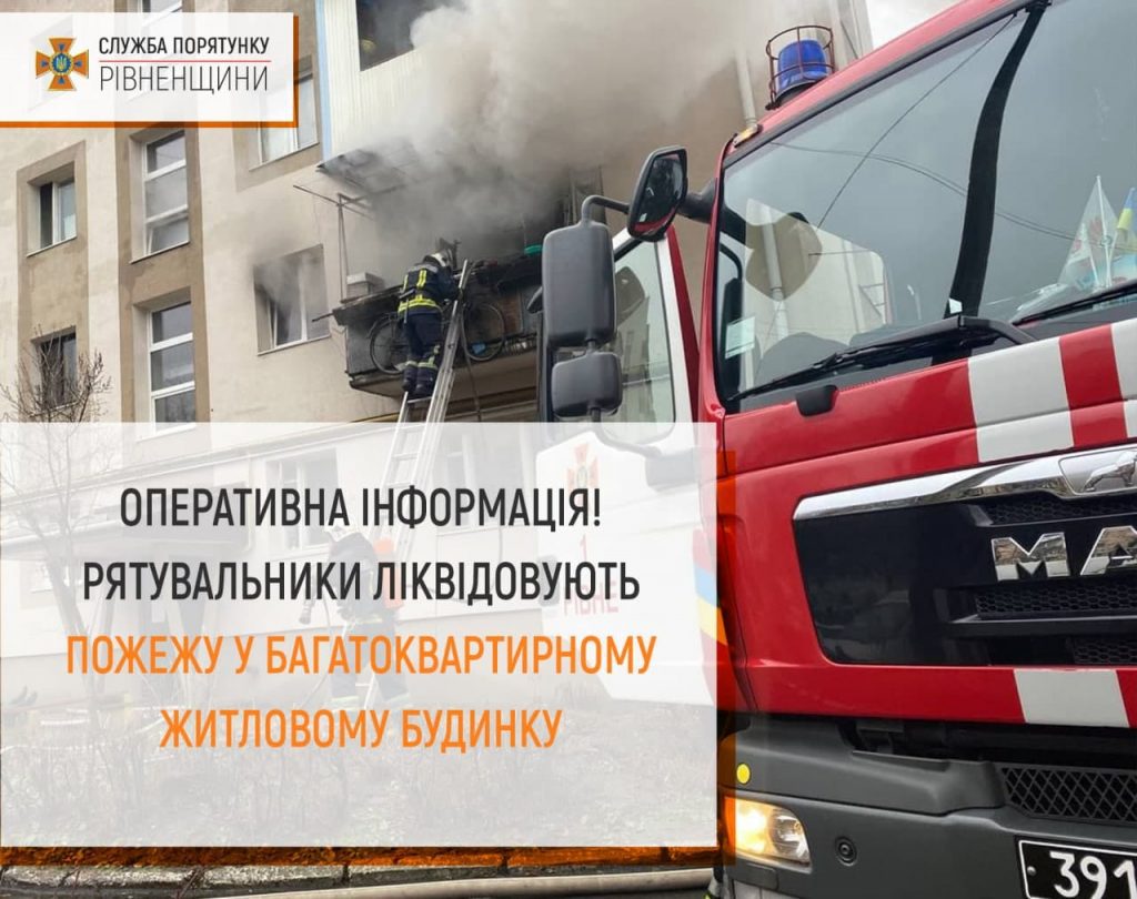 24 грудня о 14:50 на спецлінію “101” надійшло повідомлення про пожежу у квартирі за адресою: м. Рівне, вул. Набережна. На місце події було направлено три чергових відділення рятувальників та оперативно-координаційний центр обласного управління ДСНС.