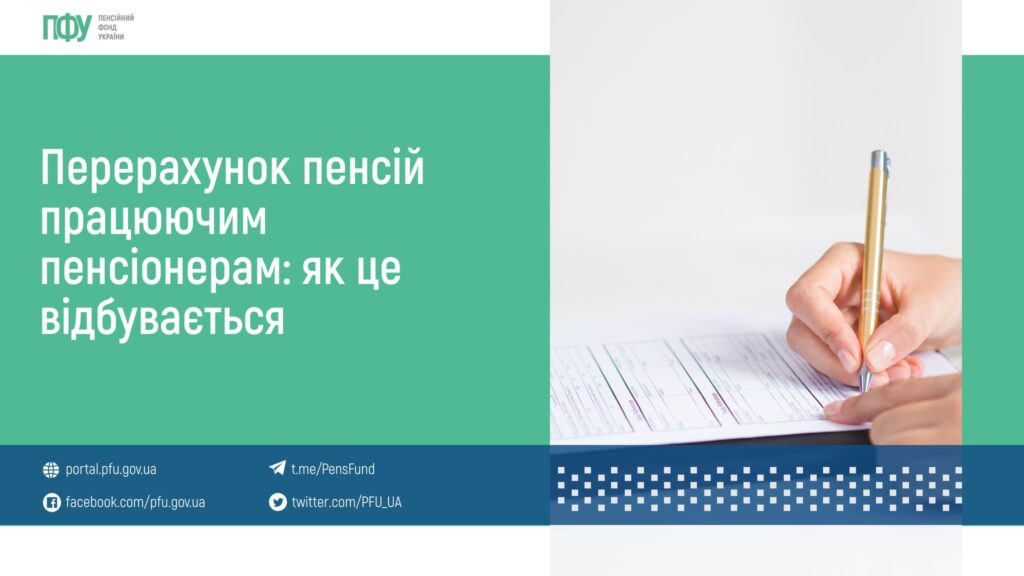 Дата проведення перерахунку пенсій працюючим пенсіонерам – 1 квітня 2023 року. Перерахунок з квітня буде проведено після того, як до Державного реєстру загальнообов’язкового державного соціального страхування надійдуть відомості про сплату єдиного внеску за І квартал 2023 року (очікуваний строк – травень місяць). Тобто, орієнтовно у червні, пенсіонери, які матимуть право на перерахунок, отримають збільшені розміри пенсійної виплати та доплату за попередні місяці, починаючи з 1 квітня.