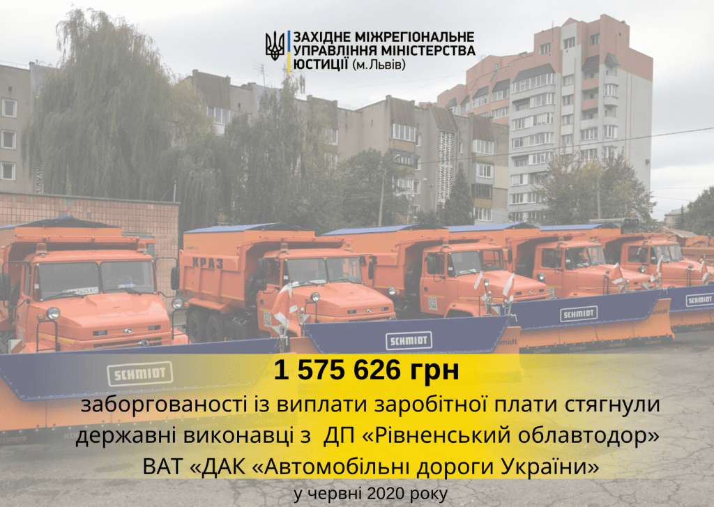 У червні 2020 року з окремих боржників державним виконавцям вдалося стягнути мільйони гривень заборгованості. Одну з найбільш сум – 1 575 626 грн – стягнуто з ДП «Рівненський облавтодор» ВАТ «ДАК «Автомобільні дороги України». Довгоочікувані кошти отримали 258 працівників підприємства. Однак, підприємство ще продовжує боргувати 2,1 млн грн. Загалом у червні працівники органів виконавчої служби області повернули 318 стягувачам більше 3 млн грн.