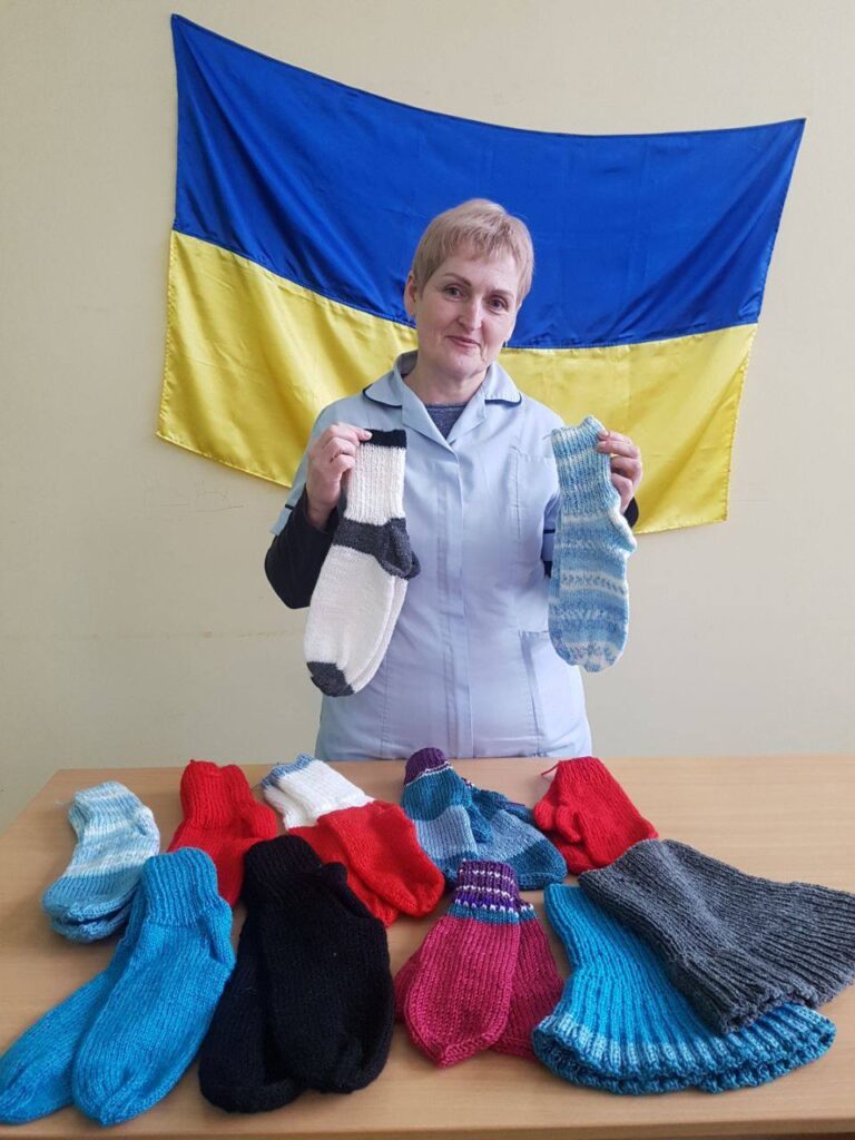 Працівниця бібліотеки для молоді у Рівному Тетяна Тарадайко постійно долучається до в’язання теплих шкарпеток на передову.