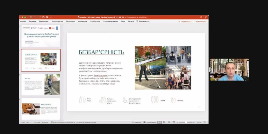 Семінар провела Радниця-уповноважена Президента України з питань безбар’єрності Тетяна Ломакіна. Особливу увагу приділили питанням, як мають виглядати та надаватися послуги на місцевому рівні, як ефективно комунікувати з жителями громад, писати документи, уникаючи дискримінаційної термінології тощо. Захід відбувся за підтримки ПРООН.
