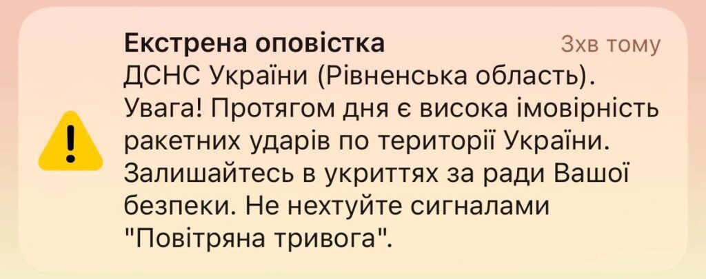 Паралельно із звуковим сигналом оповіщення повітряної тривоги на телефон українців почали приходити повідомлення від ДСНС.