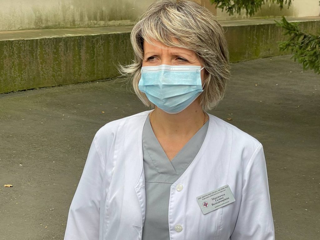Як розповіла завідувачка відділення Галина Максимчук (на фото), щодоби з діагнозом Covid-19 у заклад поступає 10-12 людей. На сьогодні у них перебуває понад півсотні пацієнтів. Четверо людей із важким ураженням легень знаходяться у відділенні інтенсивної терапії.