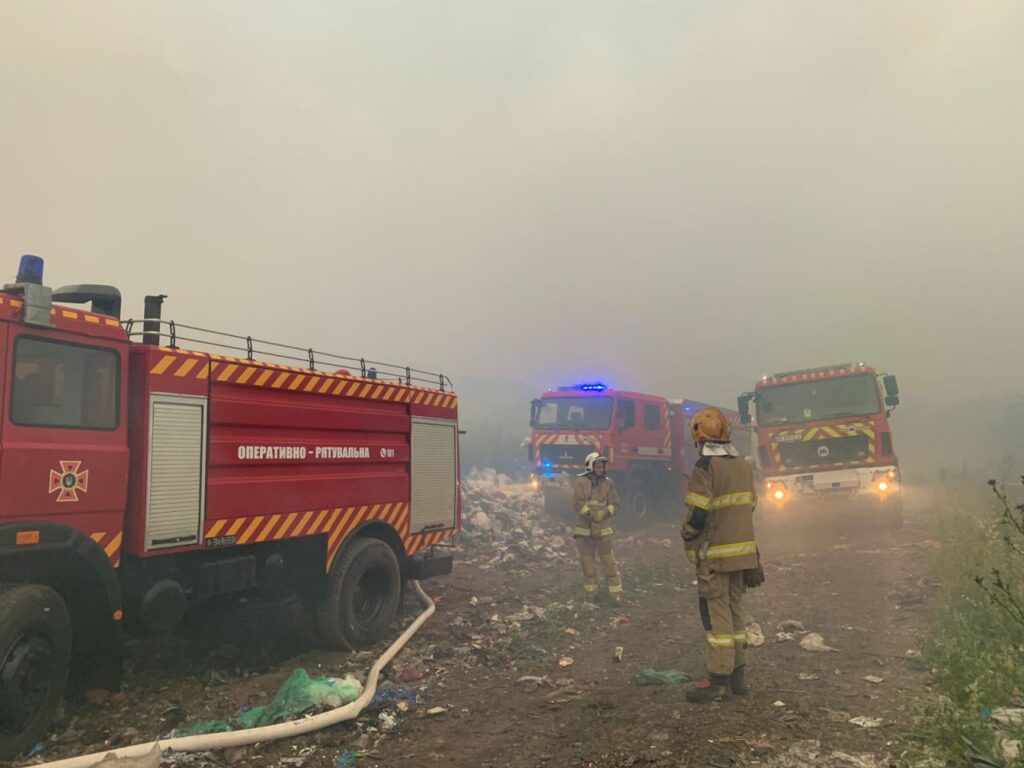 Над ліквідацією пожежі працюють сім автоцистерн та оперативно-координаційний центр обласного управління ДСНС, а також техніка та працівники КАТП-1728, яке утримує сміттєзвалище. Ускладнює гасіння пожежі сильний вітер.