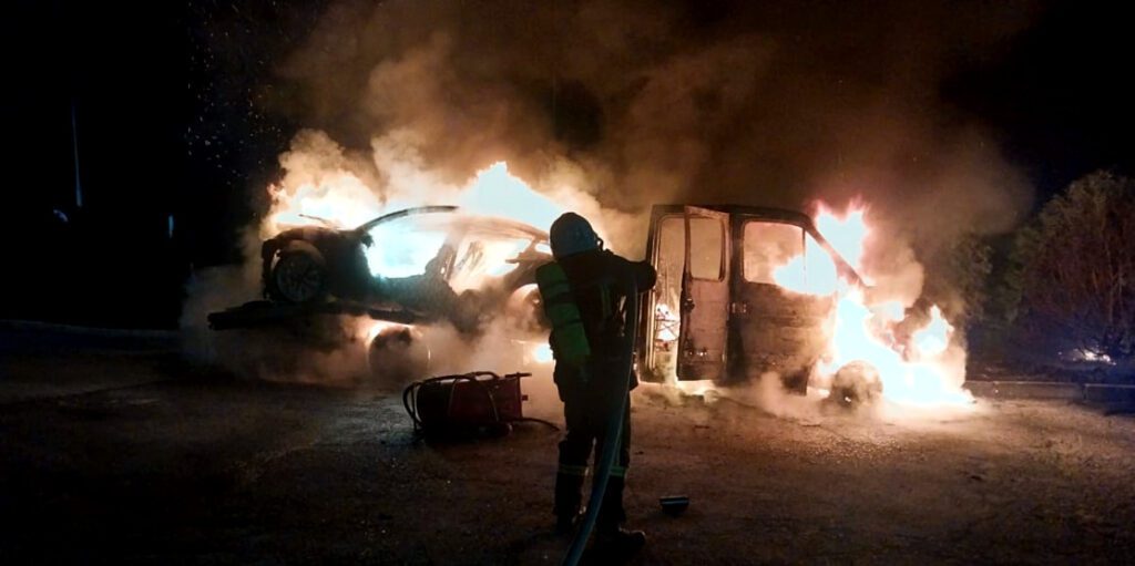 Автоваз та один з автомобілів був повністю охоплений вогнем. Існувала загроза перекидання полум’я на два інших автомобілі. Рятувальники у першу чергу відбуксирувати на безпечну відстань дві автівки та подали на гасіння вогнегасні речовини. О 02:07 пожежу було локалізовано, а о 02:10 повністю ліквідовано.
