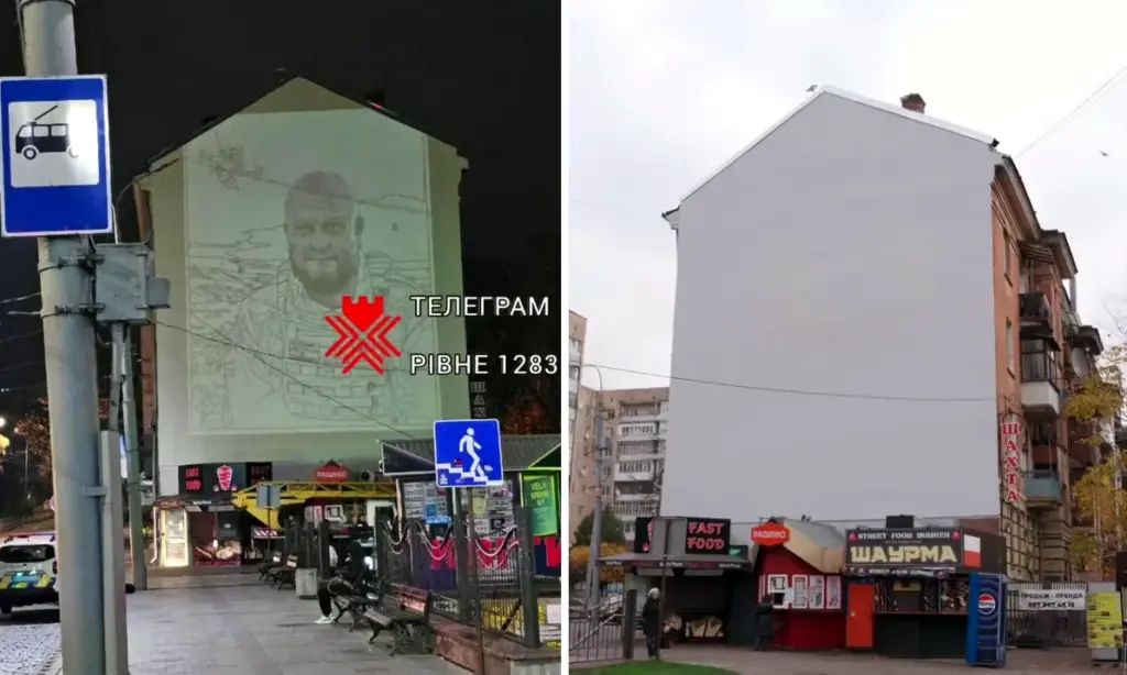 У Рівному, попри чинний мораторій на створення муралів, у ніч проти 7 листопада невідомі особи розпочали нанесення малюнка на стіну будівлі на вулиці Соборній, 15.