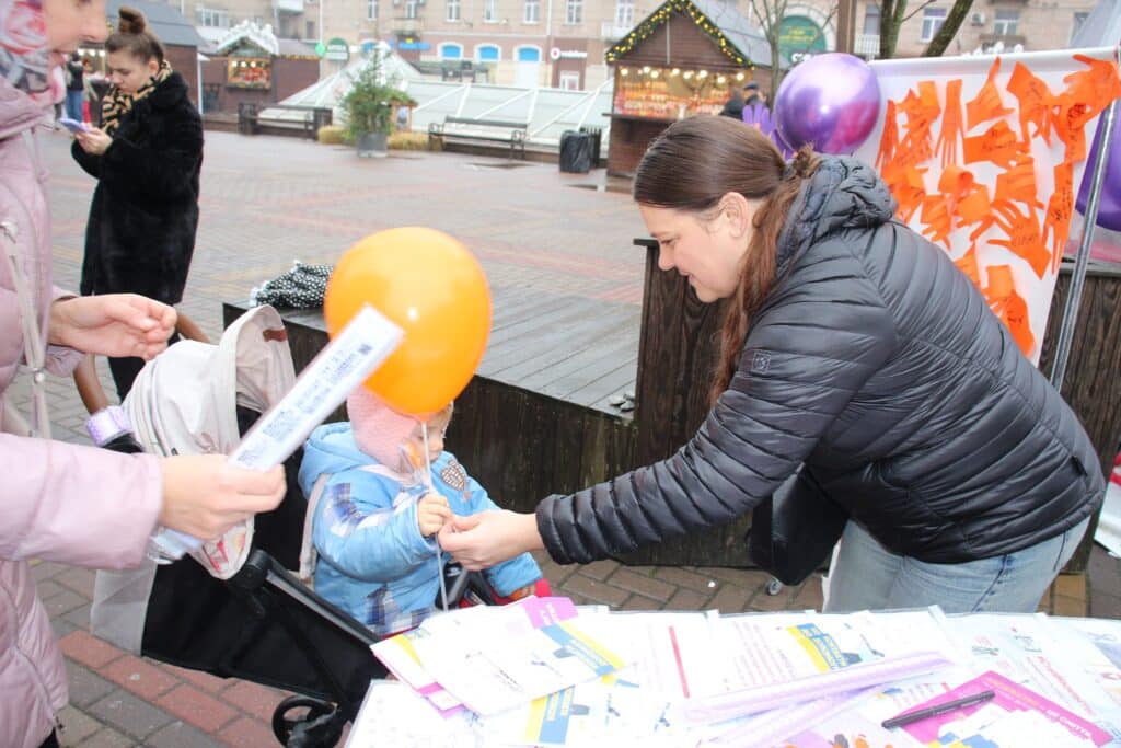 Для дітей організували невеликі подарунки – кульки, мандаринки та оранжеві смаколики, що символізують надію та прагнення до життя без насильства.