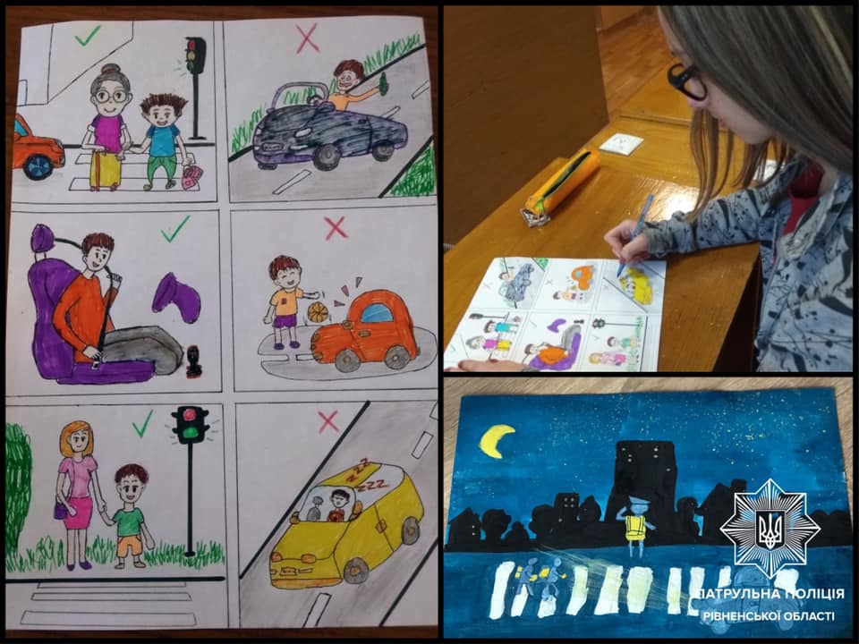 У патрульні поліції Рівненської області визначили переможців дитячого конкурсу малюнків присвяченого безпечній поведінці на дорозі.