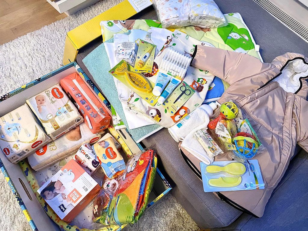 Отже оновлений «пакунок малюка» уміщує 63 види товарів, необхідних для догляду за немовлям, а також для гігієни породіллі.