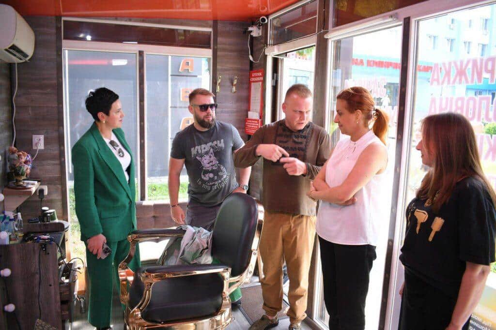 На території обласної лікарні міністерка ознайомилася з прикладами ветеранського бізнесу — кав’ярнею та перукарнею, відкритими за державною програмою підтримки.