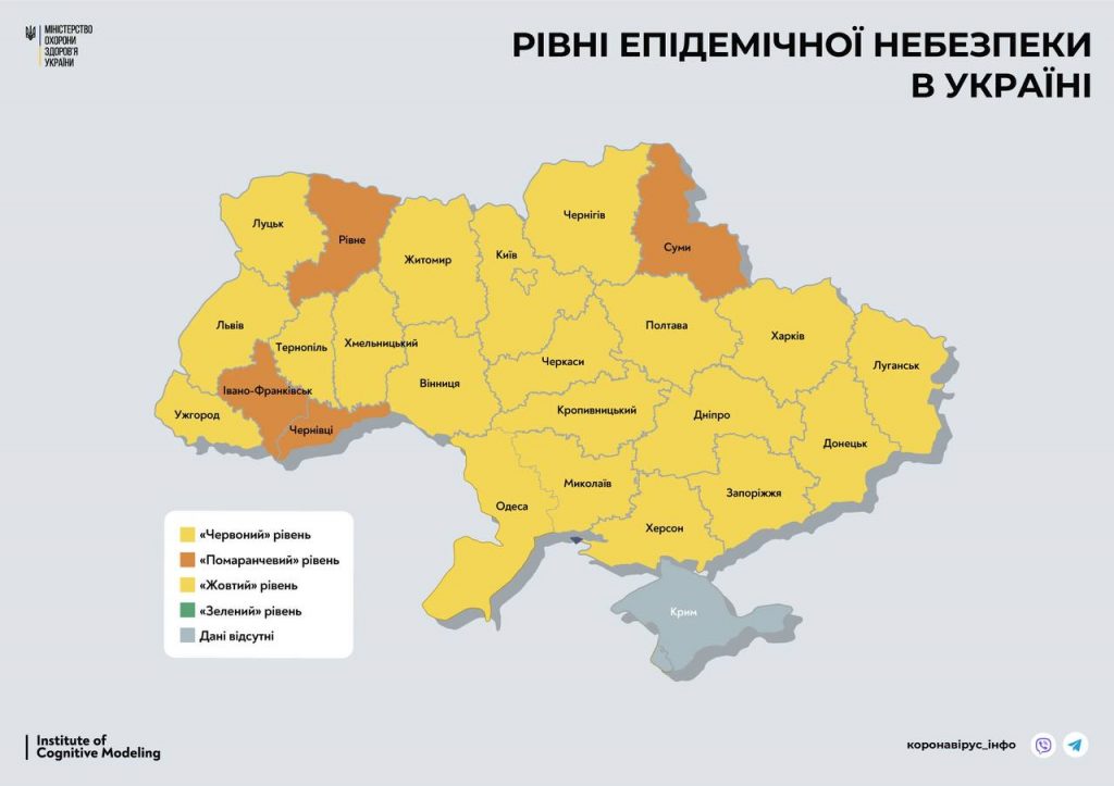 В Україні чотири області перебувають у «помаранчевій» зоні епідемічної небезпеки поширення CоVID-19.