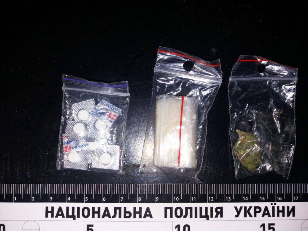 Під час поверхневої перевірки у наплічнику 28-річної місцевої жительки поліцейські виявили наркотичні речовини, розфасовані у сліп-пакети. Слідчо-оперативна група задокументувала правопорушення. З місця події вилучили п’ять поліетиленових пакетів з кристалоподібною речовиною білого кольору, вісім пластикових блістерів з нарковмісними таблетками та один — з речовиною рослинного походження зеленого кольору.