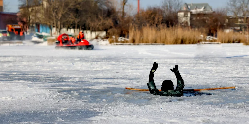 - йдучи по льоду, періодично перевіряйте палицею навколишні ділянки, уникайте місць із вмерзлими кущами або травою;
