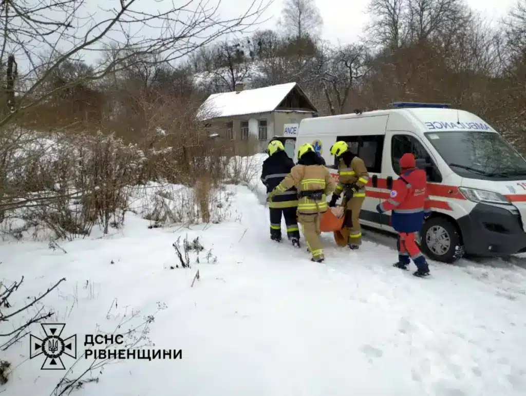 Як повідомили в ДСНС Рівненщини, через засніжене бездоріжжя та крутий пагорб автомобіль швидкої не зміг під’їхати до будинку, де перебувала хвора жінка. За попередніми даними, у неї підозрювали інсульт.