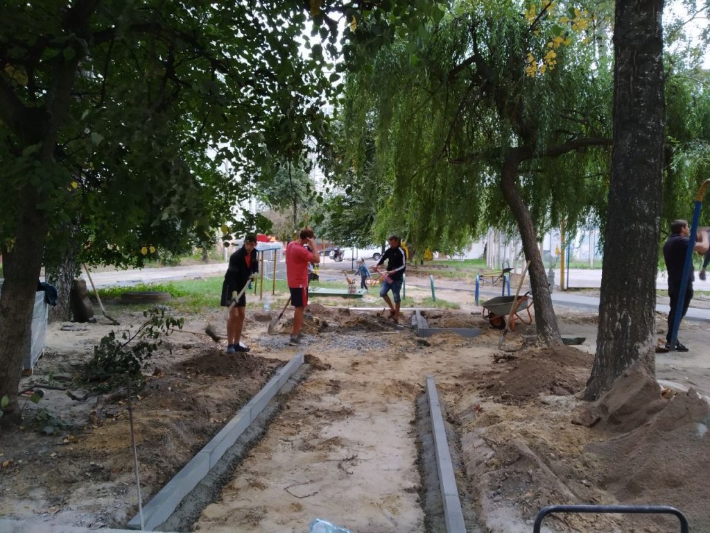 Зрештою, до серпня усі попередні процедури були завершені.відкритий тендер визначив підрядника, який активно узявся до роботи. А її тут було багато. Коротка ілюстрація стану двору виглядала так: розбите асфальтне покриття під’їзних доріг, понівечені та подекуди узагалі вибиті бордюри, у зоні відпочинку і поруч із так званим дитячим майданчиком із землі «їжаками» стирчали залишки металевої арматури. На цьому місці колись були лавки та гойдалки. Коли вони зламалися, хтось просто частково зрізав конструкцію, не довівши демонтаж до завершення. Тож такі залишки колишнього комфорту були серйозною загрозою, особливо для найменших мешканців «панельок».