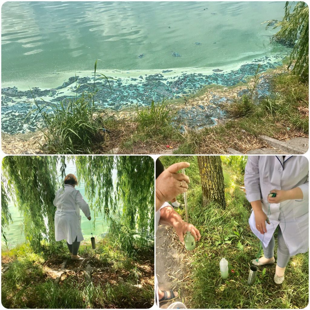 І ставить для себе пріорітетним завдання боротьби з нелегальними скидами відходів в водойми. Не став виключенням і цей випадок. – йдеться в повідомленні – Наші лаборанти, прибувши на місце скарги, дійсно виявили, що водойма під берегом вкрита синьо-зеленими плямами, які можна побачити на фото. Було відібрано дві проби вдень і вночі.