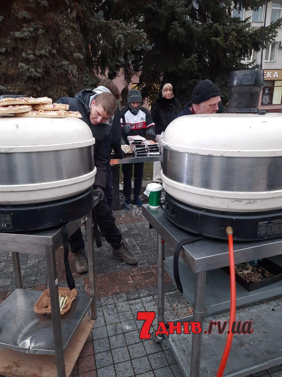 Представники шотландського благодійного фонду привезли та встановили на Майдані Незалежності пічки та пригощають всіх охочих рівнян напоями та гарячою піцою.