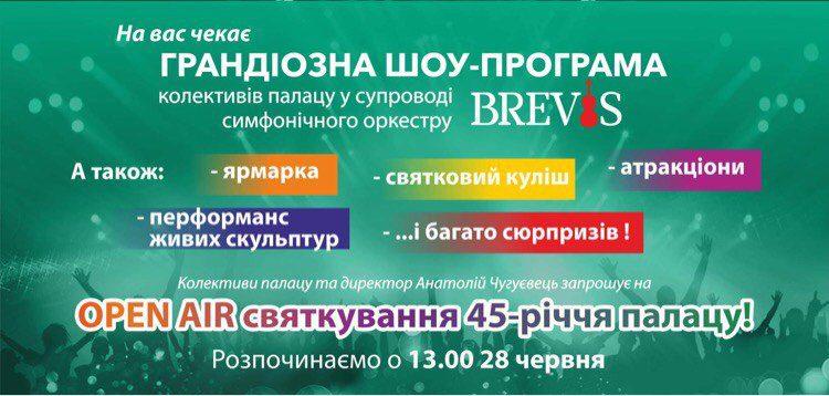28 червня відбудеться яскраве масштабне «Open air» дійство з нагоди святкування ювілею 45-річчя «Міського палацу культури».